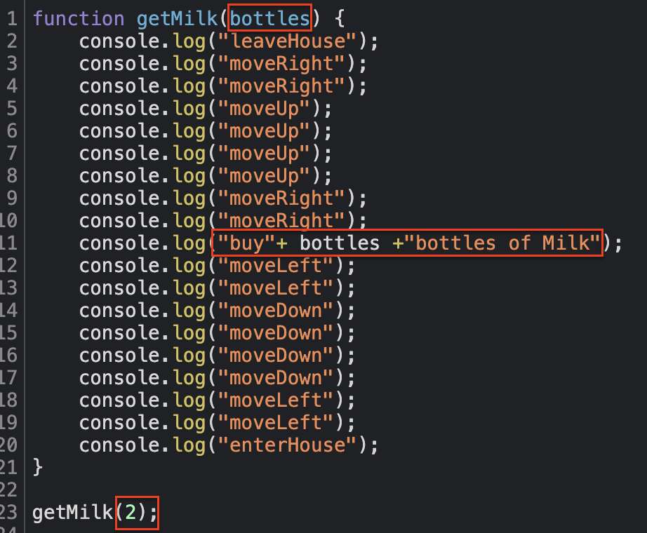 console.log("buy "+ numberOfBottles +" bottles of milk.")
