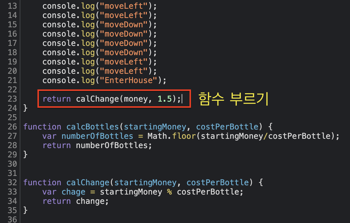 3) 이렇게 11번 라인에서 calcBottles함수를 호출하면 calcBottles함수는 계산을 시작하는데