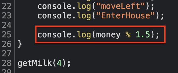 console.log("Hello master, here is your " + getMilk(5, 1.5)+ " change.");