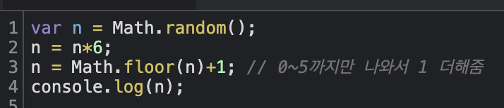 n = Math.floor(n)+1; // 0~5까지만 나와서 1 더해줌