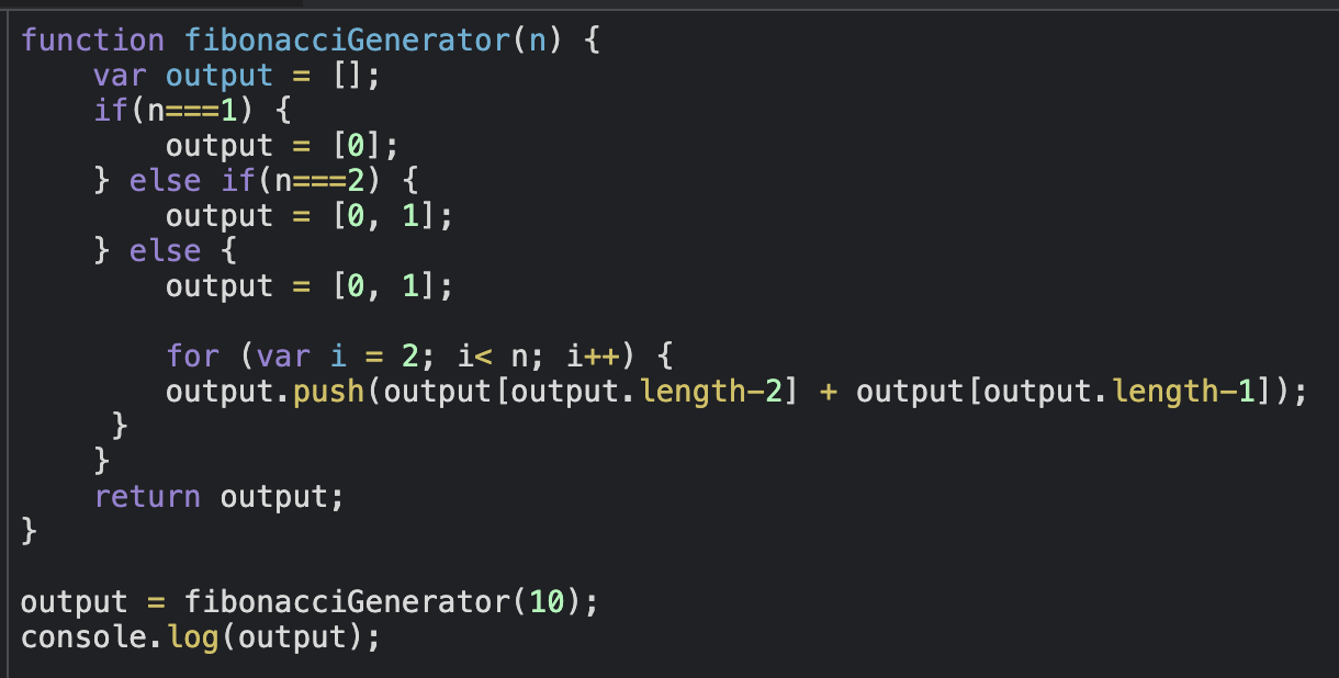 그냥 fibonacciGenerator(10);로만 호출해도 같은 결과가 나오는데