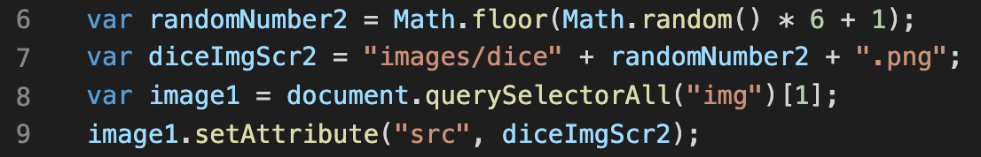 var image1 = document.querySelectorAll("img")[1].setAttribute("src", diceImgScr2);