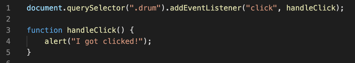 1. 클래스 drum에 해당하는 아이템 중에 querySelector로 첫번째 것만 클릭시 alert가 뜨게 해본다.