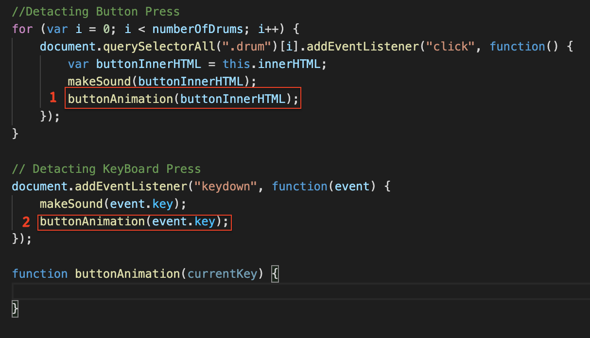 buttonAnimation(currentKey)로 들어가서 실행하게 했다.