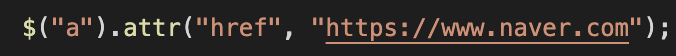 attr() 메소드의 첫 번째 인풋은 뭘 바꿀지 두 번째 인풋은 뭘로 바꿀지를 적으면 된다.