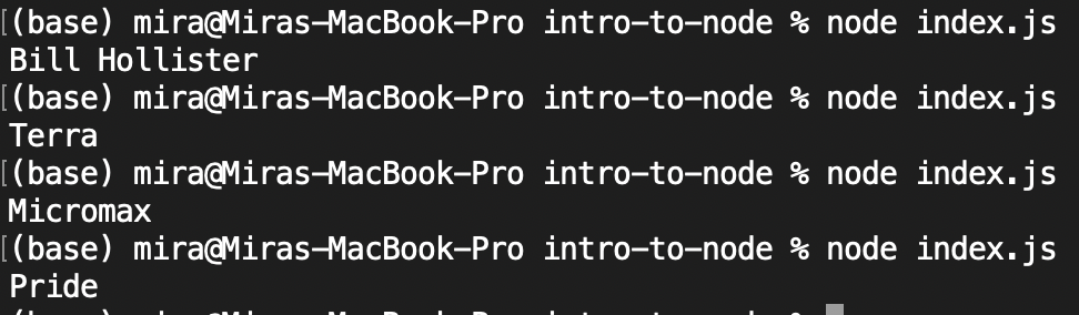 터미널에 node 와 app.js 파일명을 적어주면 node가 파일을 읽는다.