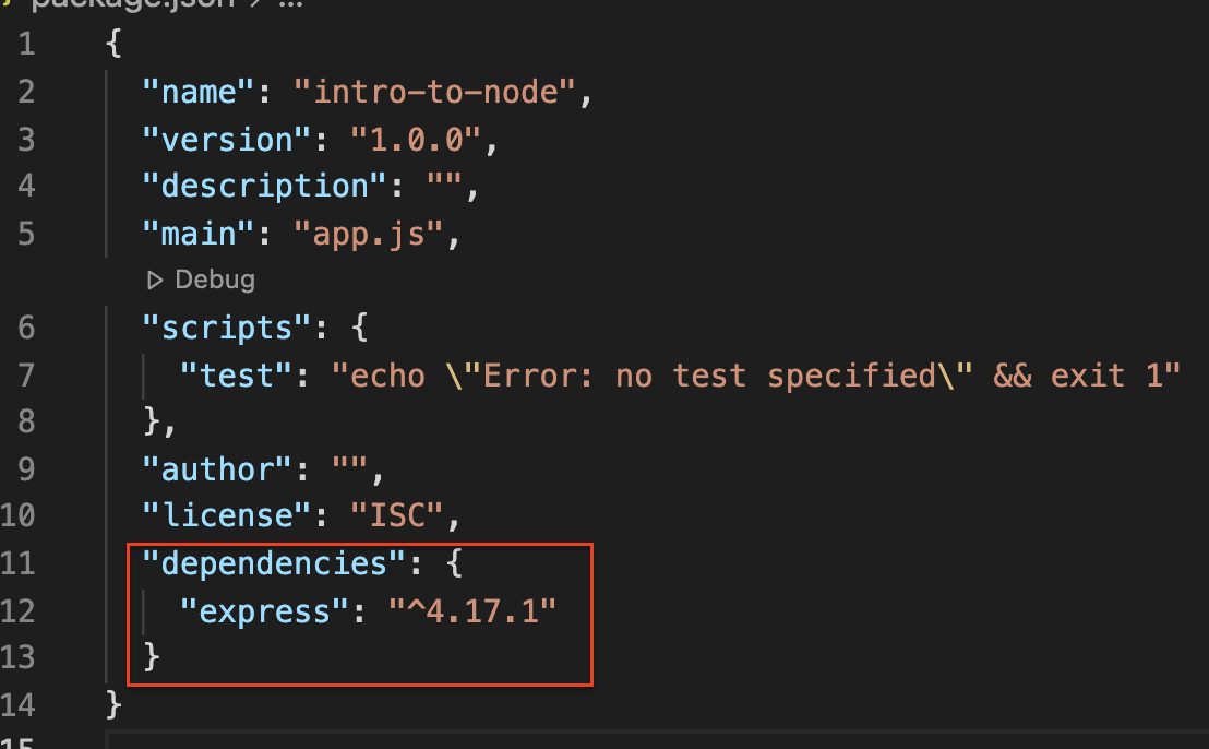 Express 다운 받고 나면 package.json의 dependency를 보면 express가 뜬다.