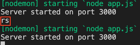 콘솔에서 rs 누르면 restart 할 수 있다.