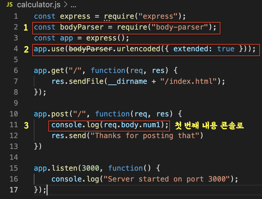 우리가 사용할 건 아니지만 적어줘야한다. (bodyParser가 declare 하라고 요구한다.)