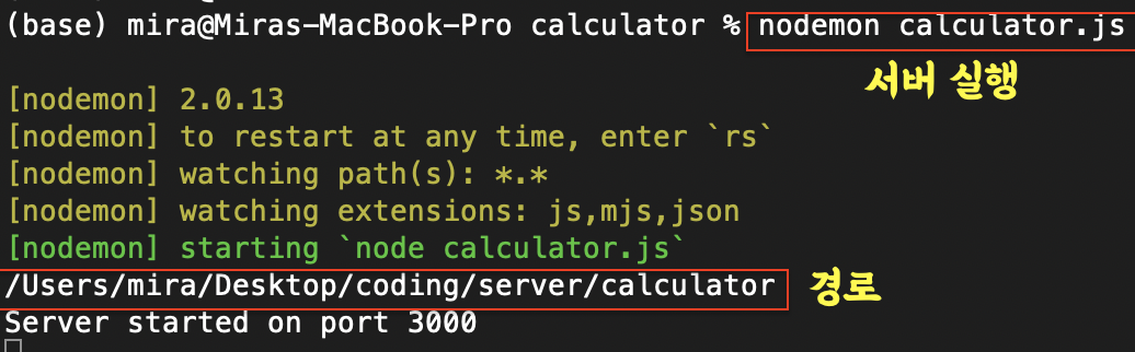 nodemon calculator.js (파일명)