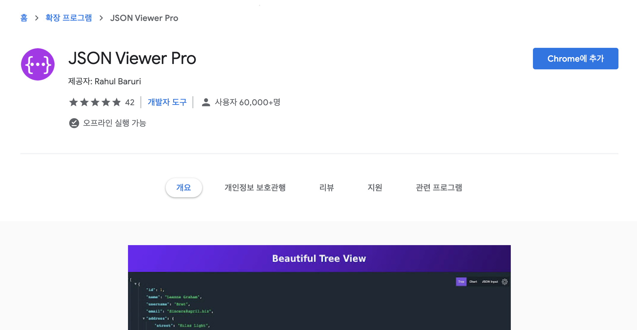 리프레쉬하면 JSON Viewer로 좀 더 정리된 화면으로 볼 수 있다.