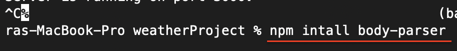 터미널에서 nodemon을 일단 나오고 (control + C) 나서