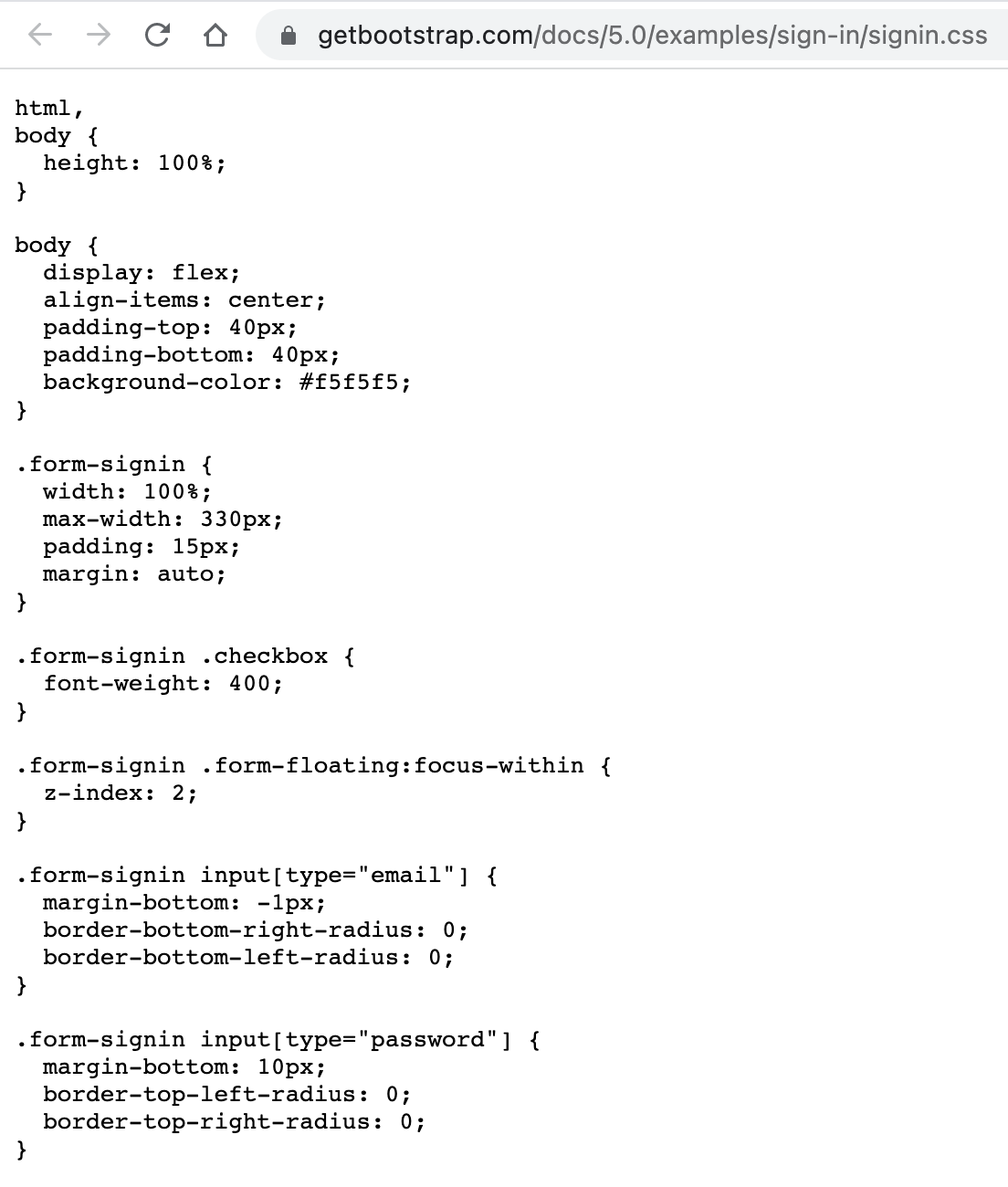 거기 링크에 있는 href에 있는 signin.css 를 클릭한다.
