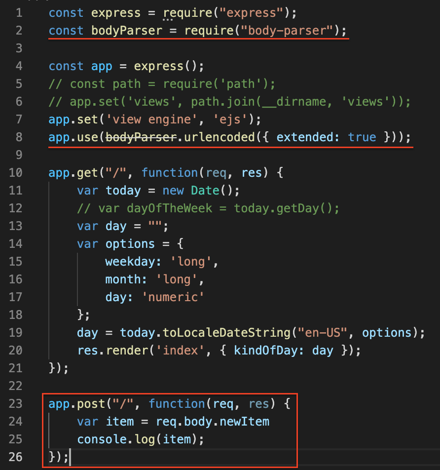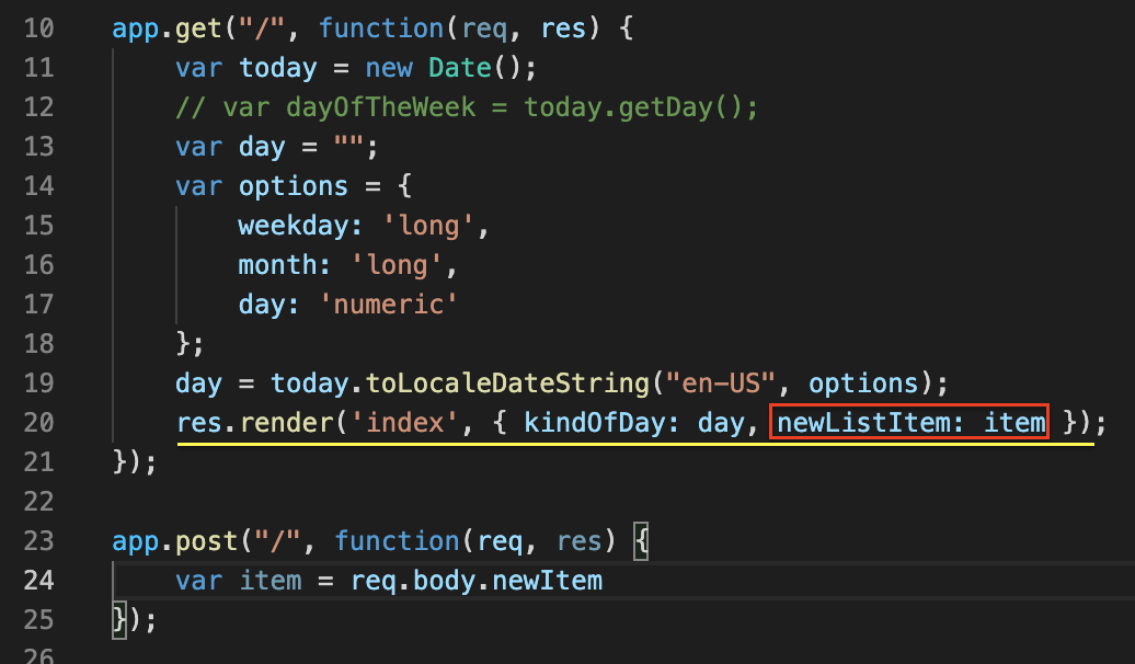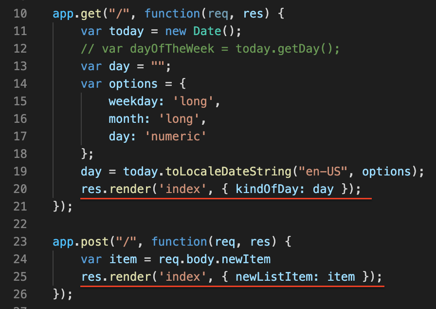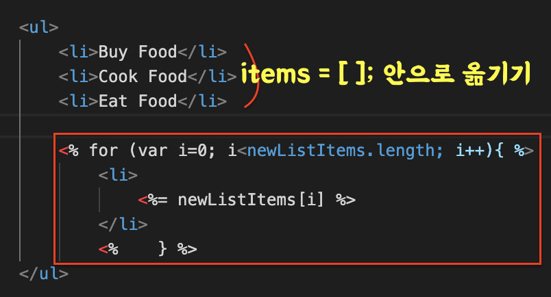 3-1 index.ejs에서 newListItems를 for loop으로 만든다.
