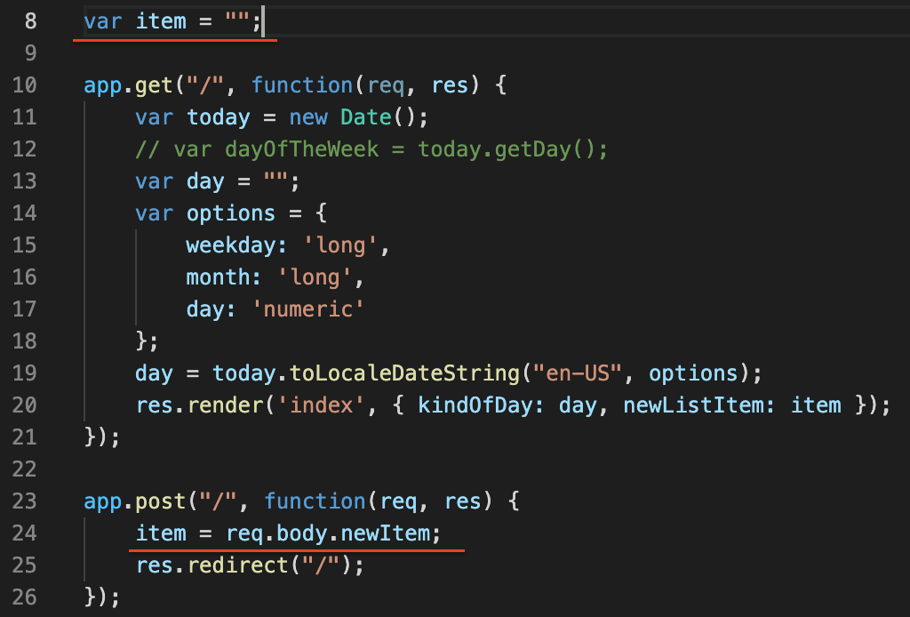Line 24: 텍스트 박스 안에 입력된 newItem의 value가