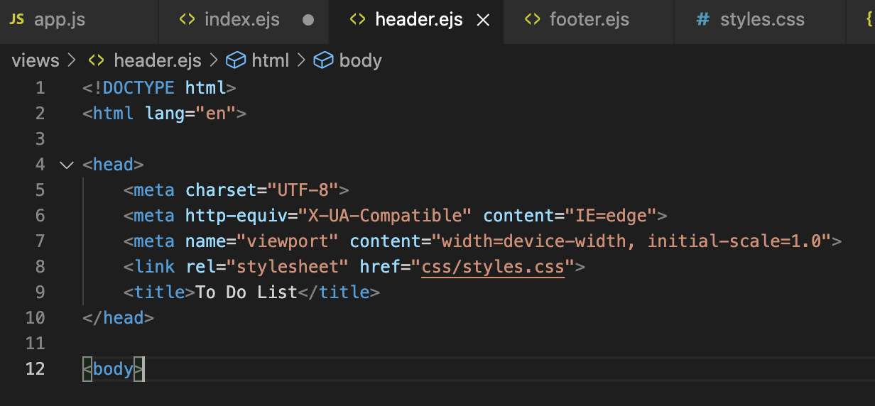 html header해당하는 부분을 잘라서 headers.ejs 파일에 붙인다.