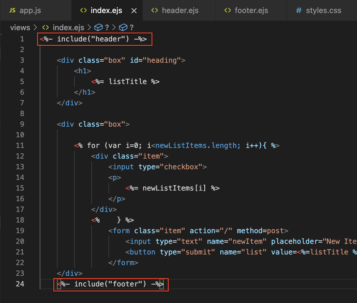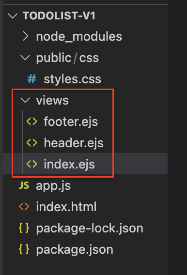 views 폴더 안에 headers.ejs 와 footer.ejs 파일을 만든다.