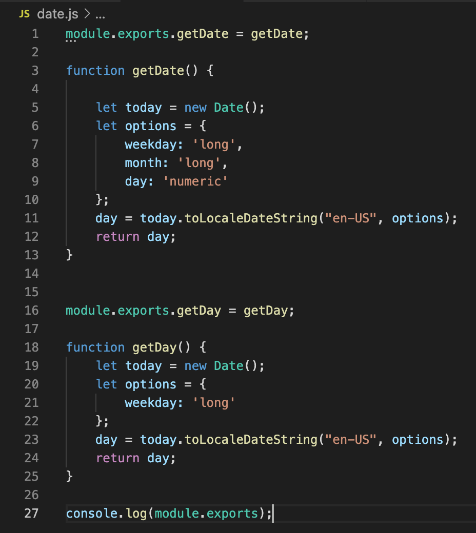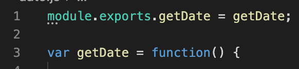 module.export.getDate 은 더 간단하게 module을 생략해도 된다.
