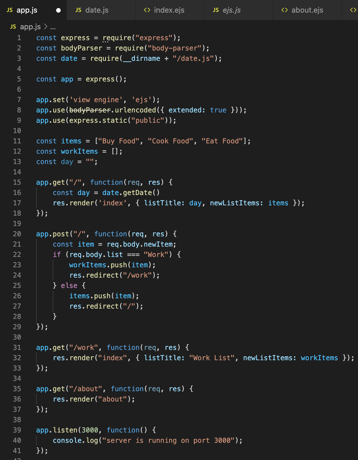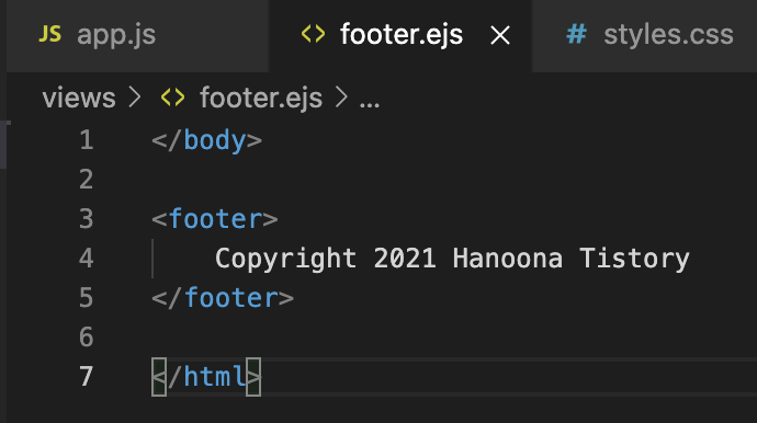 | To Do List 9 ] Templating VS Layouts | header.ejs footer.ejs 따로 빼서 연결 (0) | 2021.11.02 |