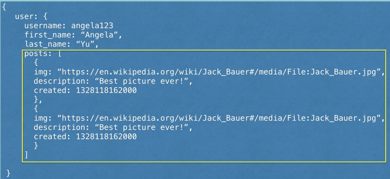 몽고를 사용하면 같은 데이터는 JSON objects로 represented 된다.