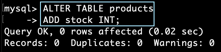 -> ADD stock INT;