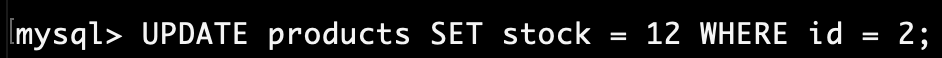UPDATE products SET stock = 12 WHERE id = 2;