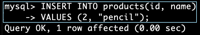 -> VALUES (2, "pencil");