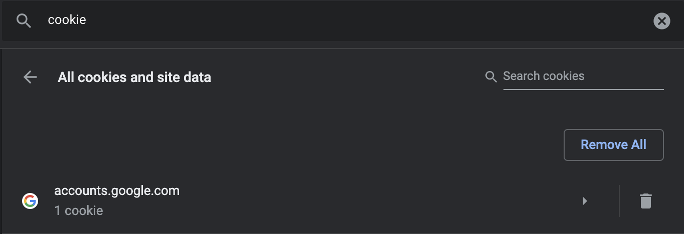 크롬 settings에 들어가서 All cookies and site data에 들어가면
