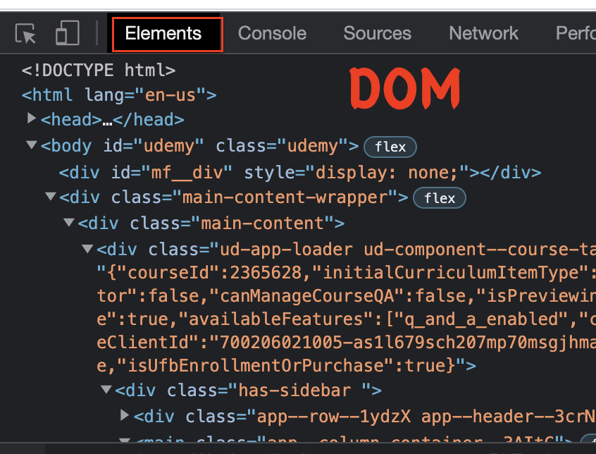 dom은 화면 오른쪽 클릭해서 inspect--> Elements를 보면 나오는 html 태그들이 dom이다.