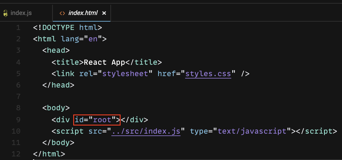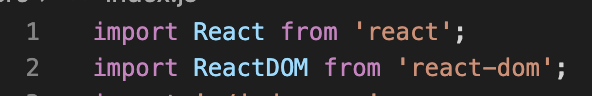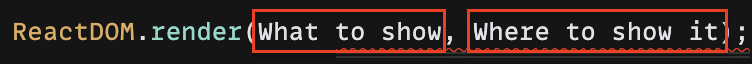ReactDOM : ReactDOM 모듈에 있는 render 메소드를 사용한다.