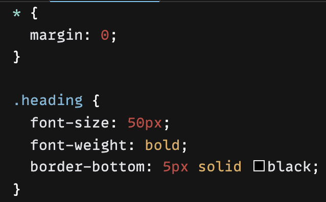 css에 클래스명 heading으로 기본 스타일을 설정해 놓는다.
