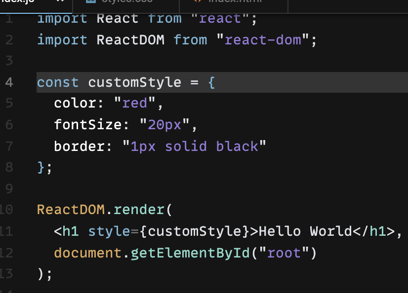 3. { }안 스타일을 적을 때 캐멀 케이스로 적어줘야 한다.