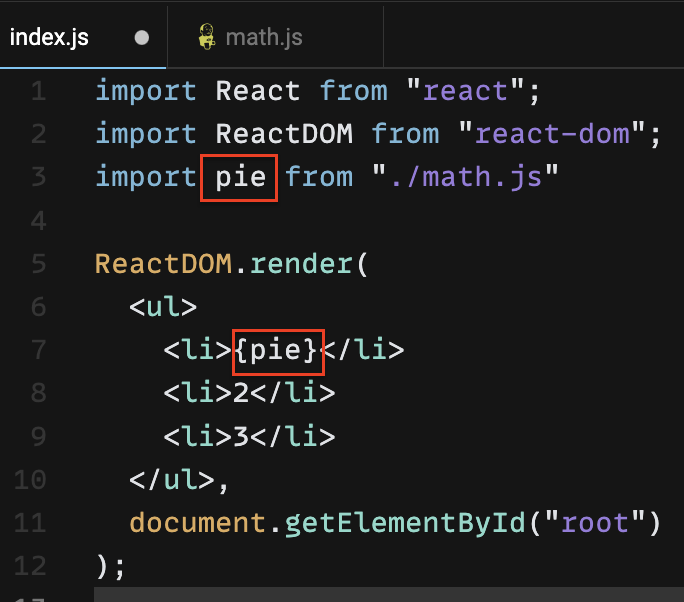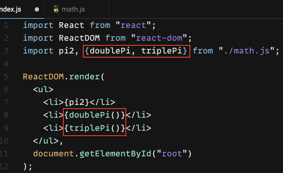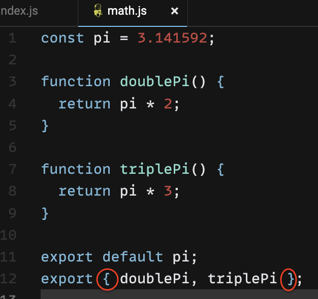 math.js에서 export 할 것이 하나 밖에 없기 때문에