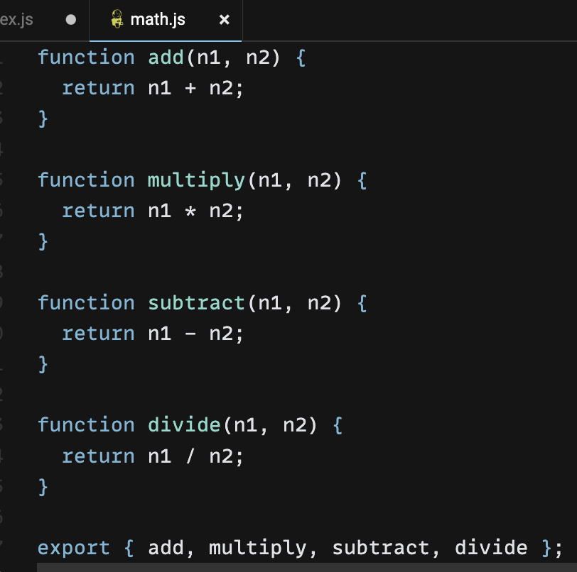 math.js에서 여러 개를 export 해보자.