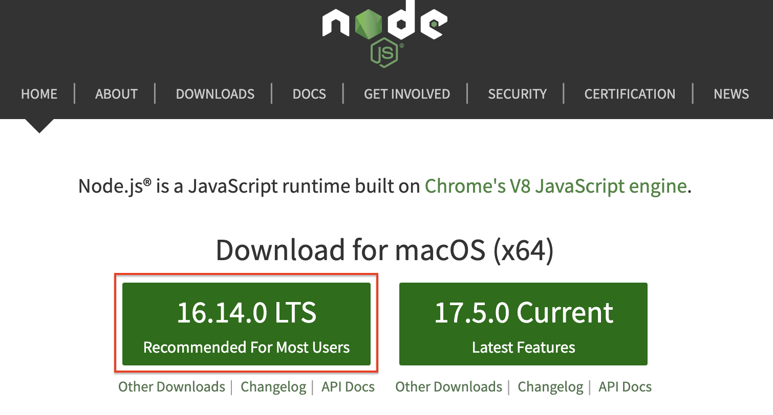 1-2. Node.js에 들어가서 최신 버젼이 무엇인지 확인하기