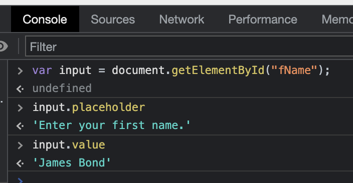 you can see it's almost like as if we have the input as an object and we're accessing each of its properies.