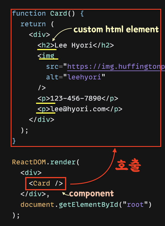 일단 Card 함수를 ReactDOM.render 밖으로 뺀다.