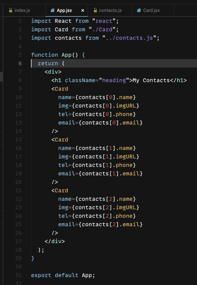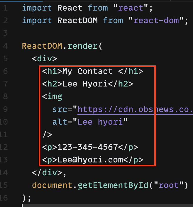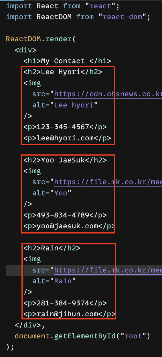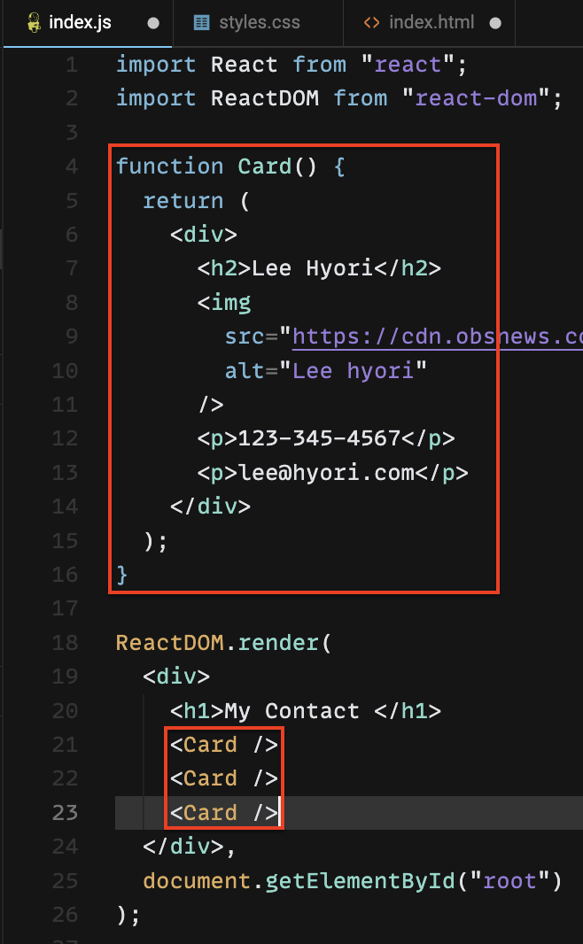 일단 App.jsx에서 contact.js 파일을 import한 후