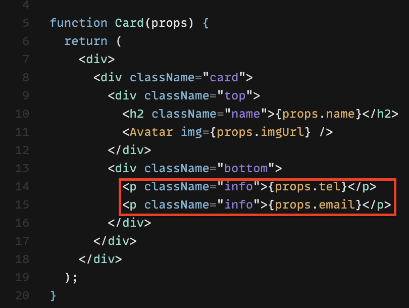 여기서 props로 전화 번호와 이메일을 구분하였다.