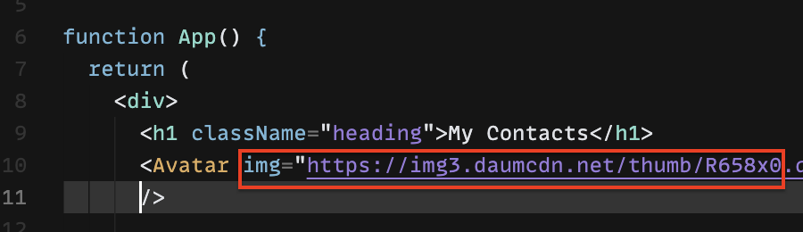 Avatar에서 {props.img} 인 것을 확인 할 수 있다.