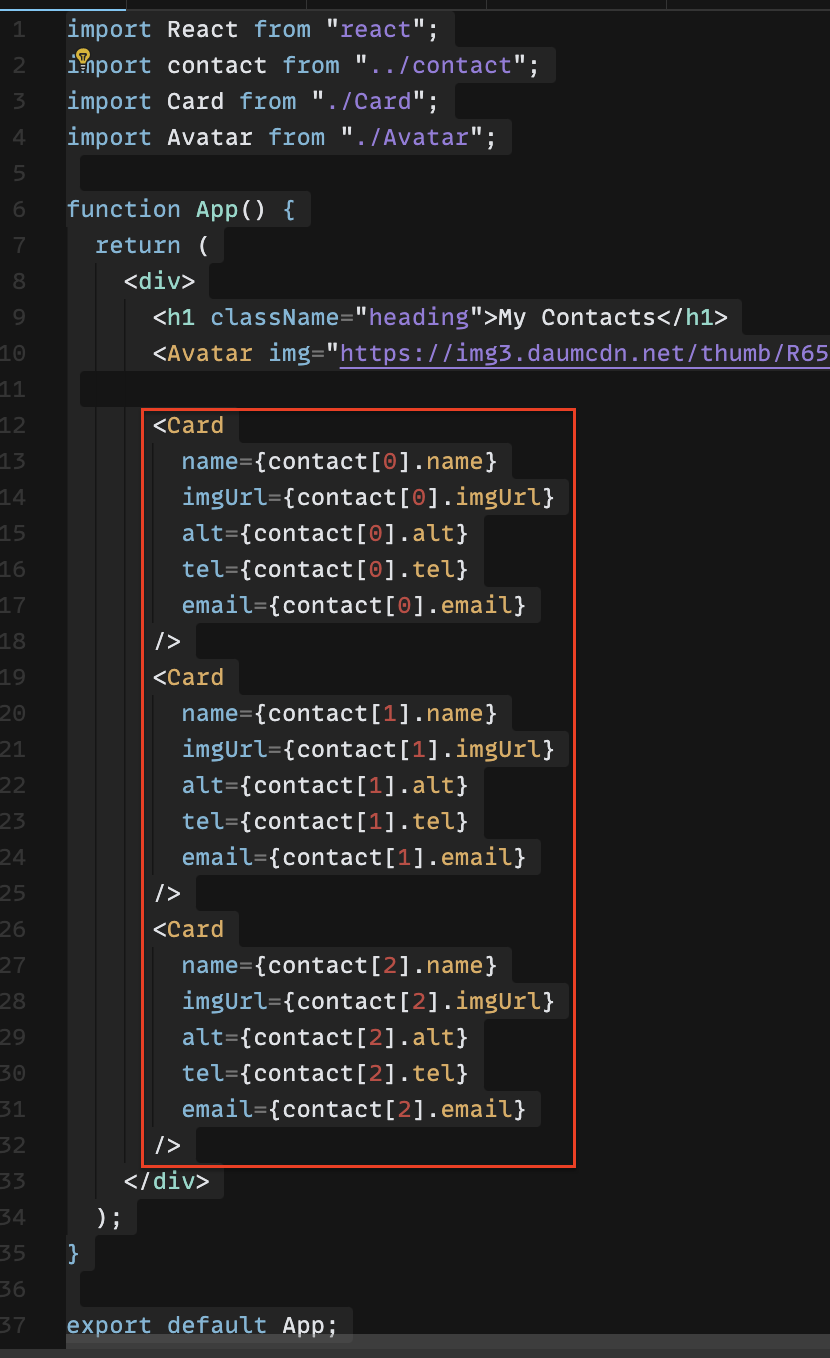 map() 함수 안에 통과 시킬 creatdCard() 함수를 만든다.