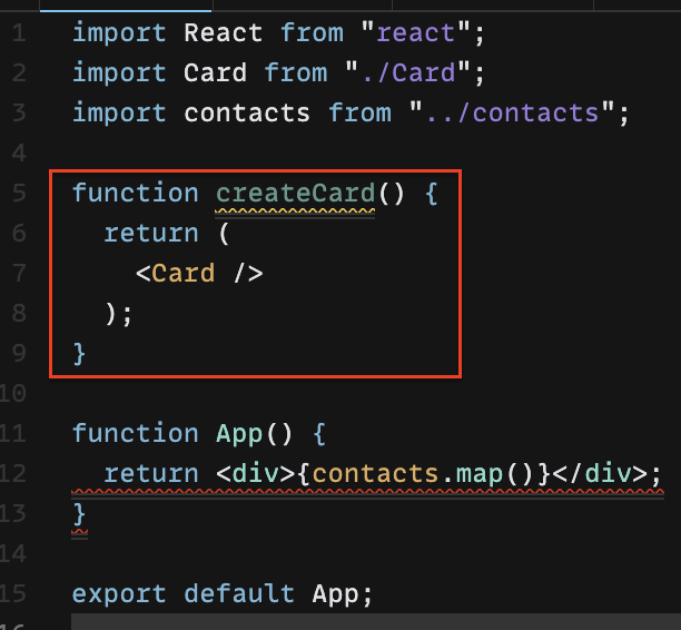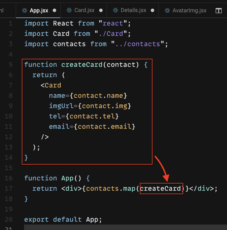 다음은 map 함수 안에서 CreatedCard 함수가 호출 되도록 한다.