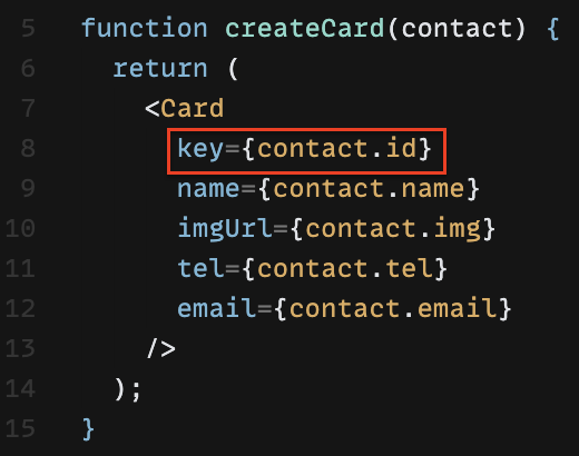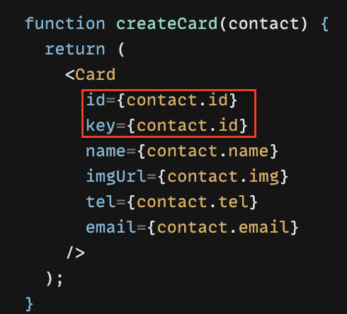 key= {contact.id}는 우리가 사용하도록 되어있지 않다.
