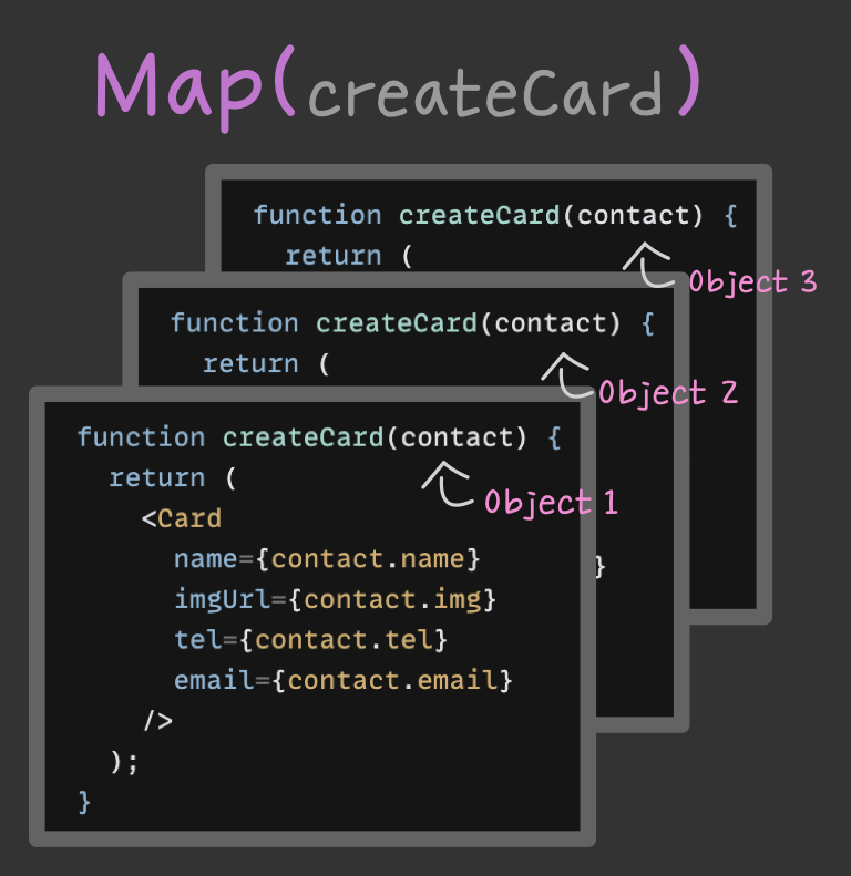 map() 함수 안에 통과 시킬 creatdCard() 함수를 만든다.