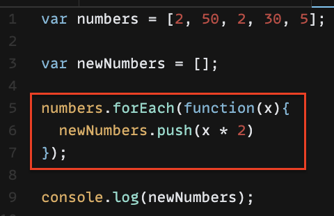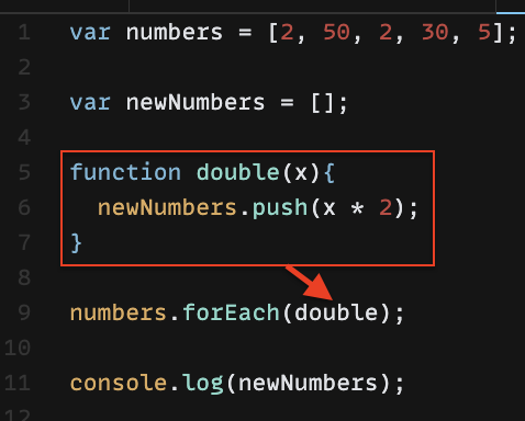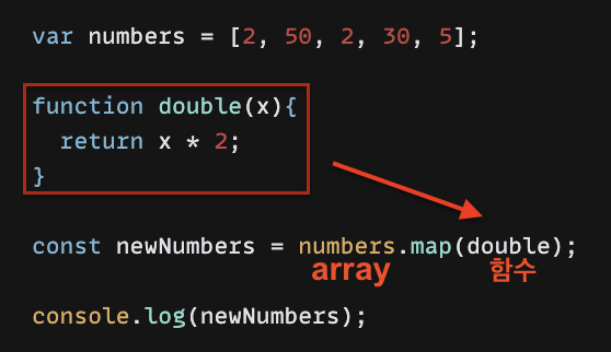 double 함수를 밖으로 빼지 않고, forEach 안에 익명함수로 들어가서 바로 적용 시켜버린다.