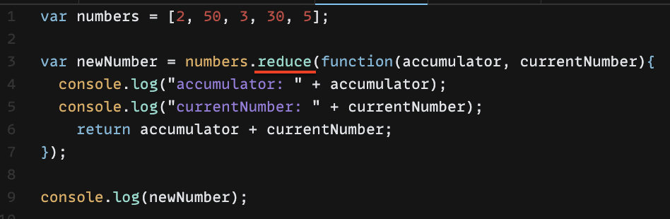 var newNumber = numbers.reduce(function(accumulator, currentNumber){