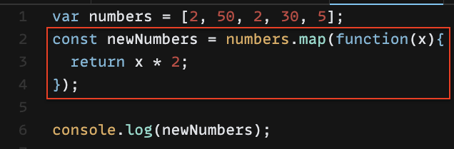 빈 array 만들 필요없이 바로 map()으로 계산된 함수를 새 array에 담아 버린다.