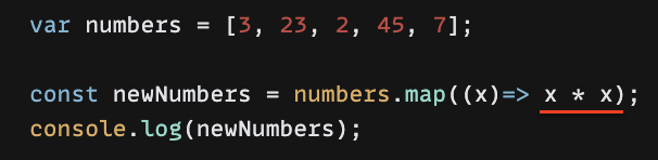 이 square 함수를 map 안에 익명함수로 바로 넣어 버릴 수 있다.
