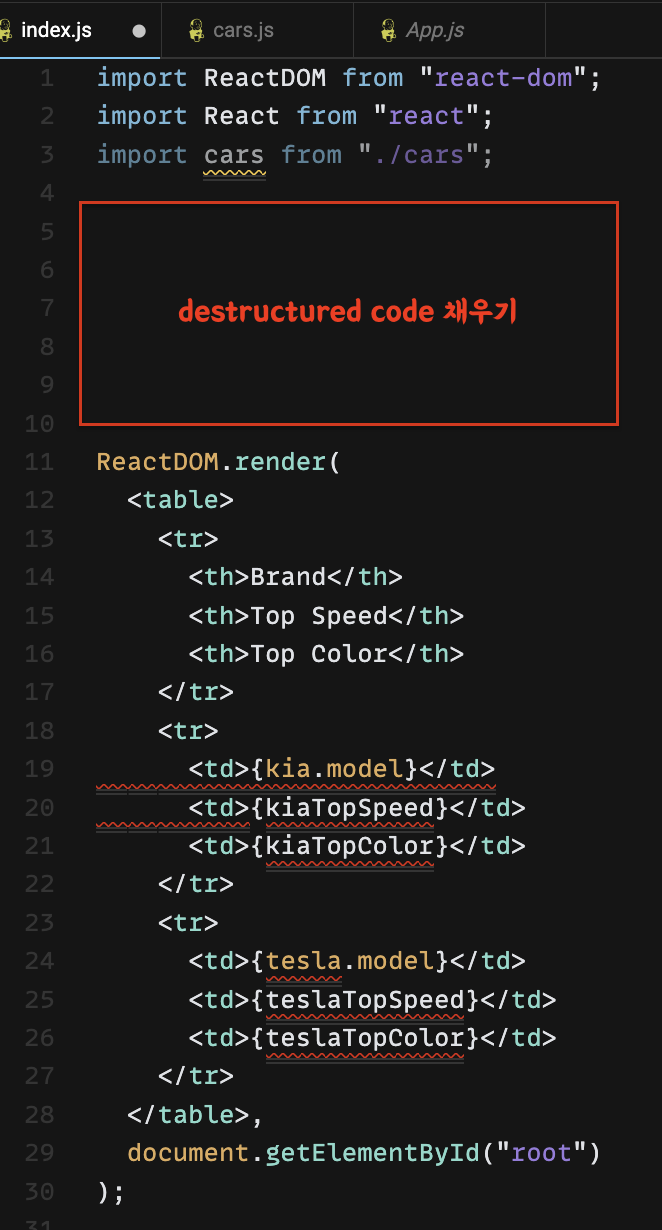 destructuring을 사용해서 아래와 같은 표를 만들기.