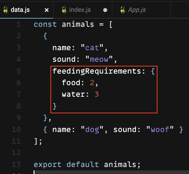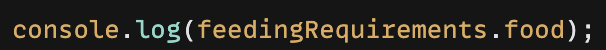 콘솔로그에서 feedingRequirements 안에서 food를 찾으면 나온다.